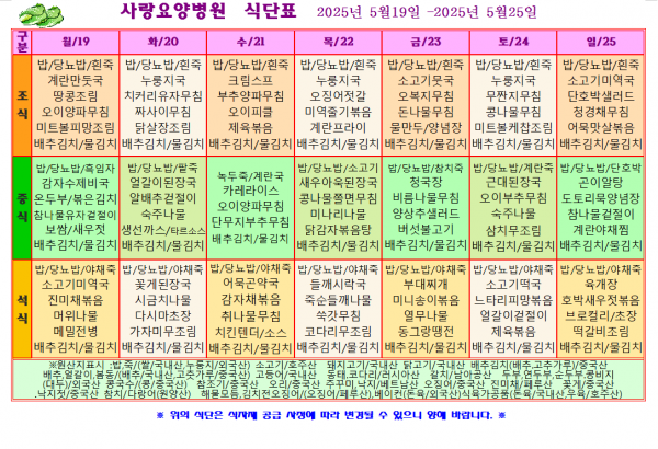사랑요양병원 5월 넷째주 식단표