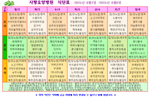 사랑요양병원 6월 첫째주 식단표