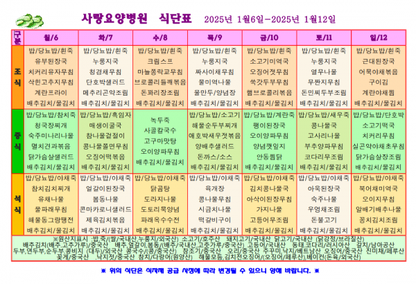 사랑요양병원 1월 첫째주 식단표
