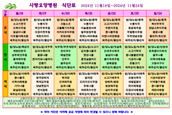 사랑요양병원 11월 셋째주 식단표